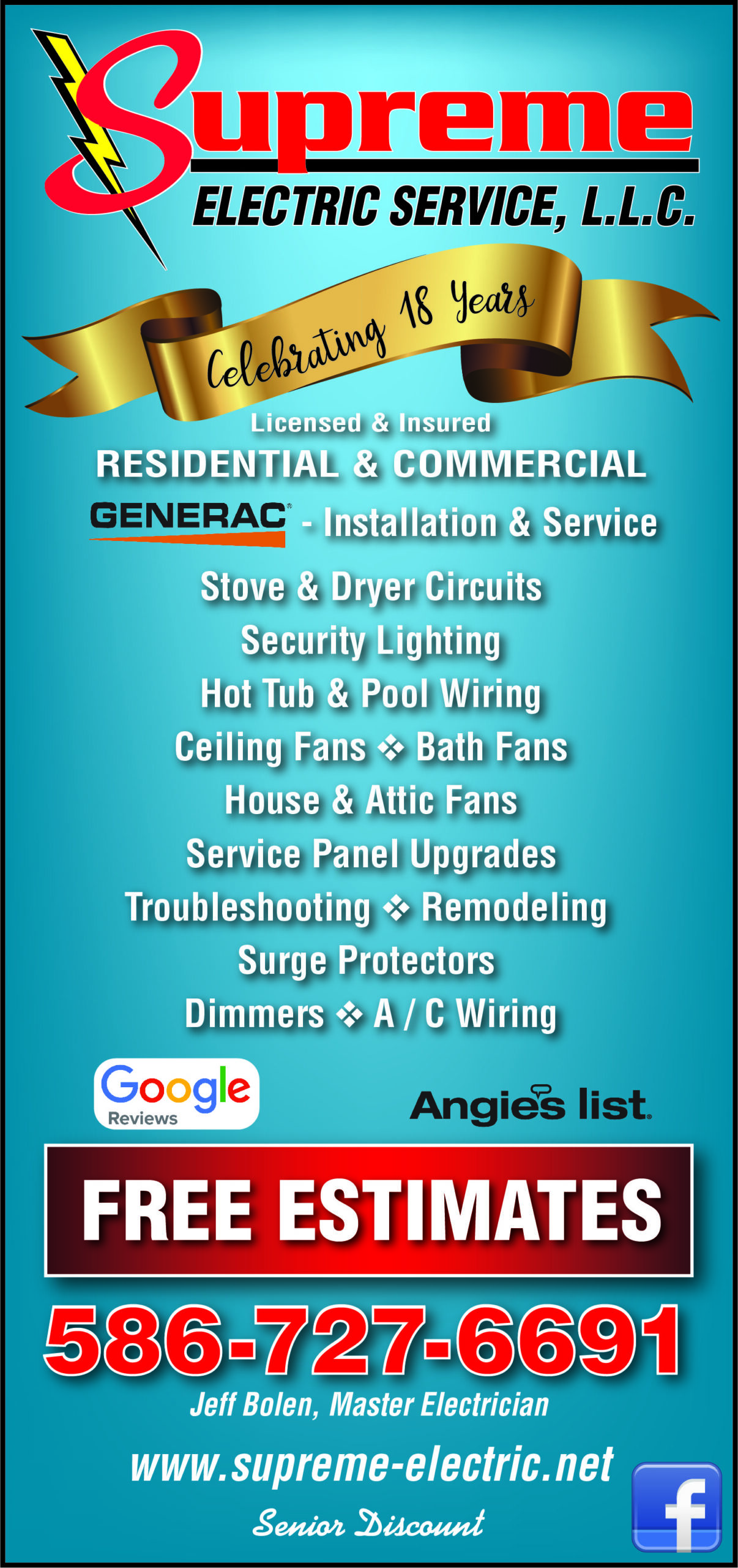 Jeff Bolen began his apprenticeship in 1991 and has since become a Master Electrician and earned his Contractor's License. In 2002, Bolen began Supreme Electric Service, L.L.C. During these years, he and his staff are continuously updating their knowledge of the latest technologies in the trade in order to provide the safest and best electrical service possible. Be assured that Supreme Electric is fully insured.